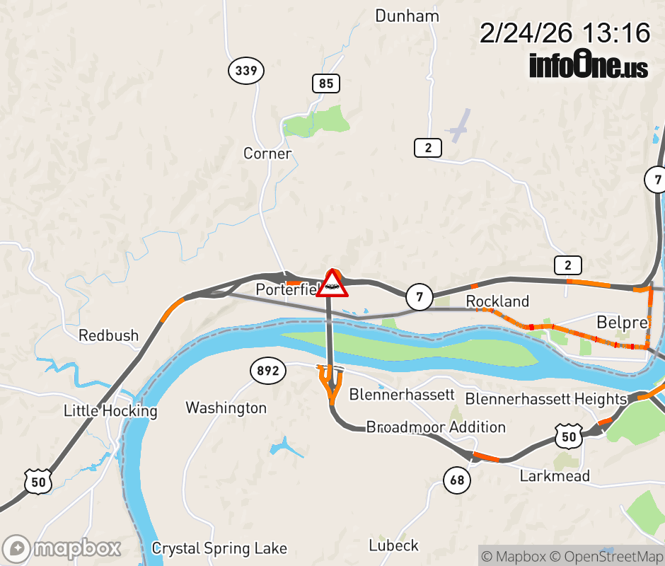 Expect lane closures on US-50/SR-32 West/SR-7 South at SR-7 South/SR-32 West, due to a crash. ![]() |