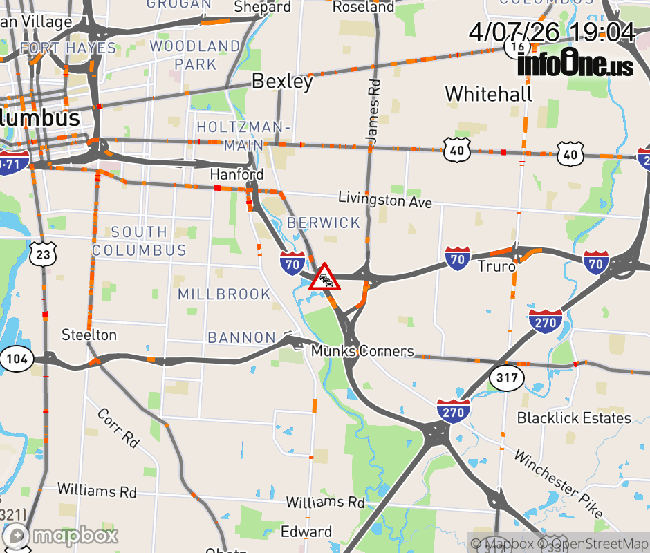 Canceled 4/7/26 7:16 PM Location: I-70 West at MM 104.8, OH Traffic hazard.