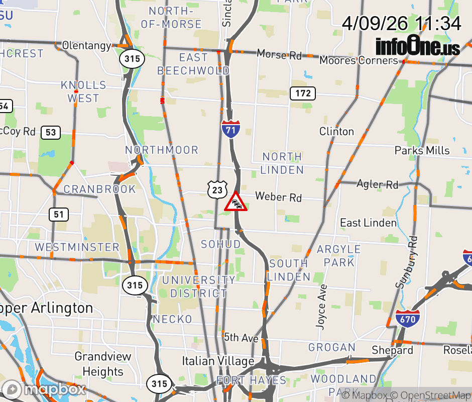 The right lane is blocked on I-71 South beyond Weber Rd, due to debris on roadway. ![]() |