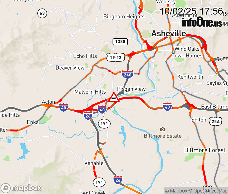 The right shoulder is closed after Exit 1B, NC 191 (Brevard Road). Updated: Thu 10/2/25 5:56 PM EDT ![]() Updated: Thu 10/2/25 5:56 PM EDT |