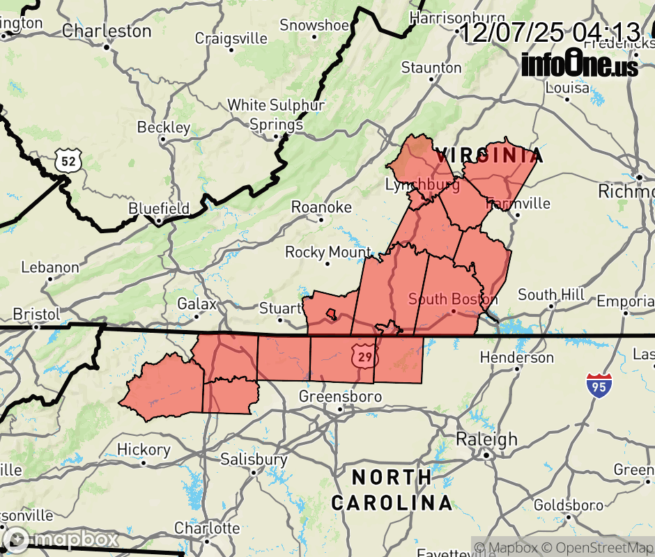 Canceled 12/7/25 8:28 AM Freezing Fog Advisory issued December 7 at 4:11AM EST until December 7 at 9:00AM EST by NWS Blacksburg VA * WHAT... Visibility one quarter mile or less in freezing fog. * WHERE... Portions of north central and northwest North Carolina and central and south central Virginia. * WHEN... Until 9 AM EST this morning. * IMPACTS... Low visibility could make driving conditions hazardous. Black ice can lead to slick travel. ![]() |