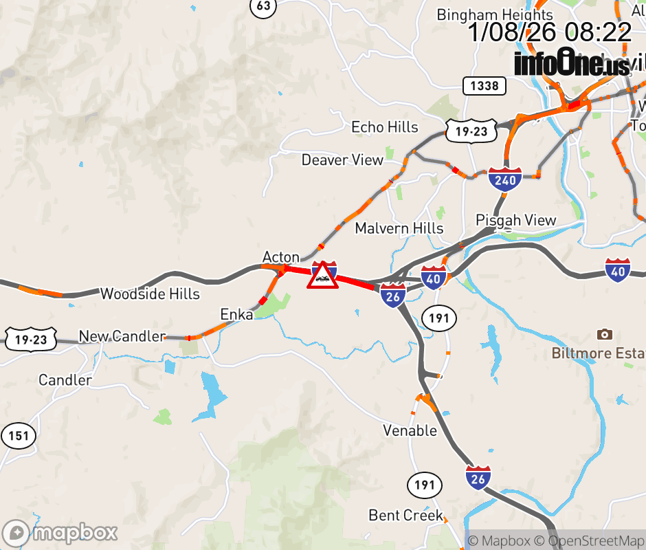 The right lane is closed after Exit 44, US 19, (Smokey Park highway). ![]() Updated: Thu 1/8/26 8:22 AM EST |