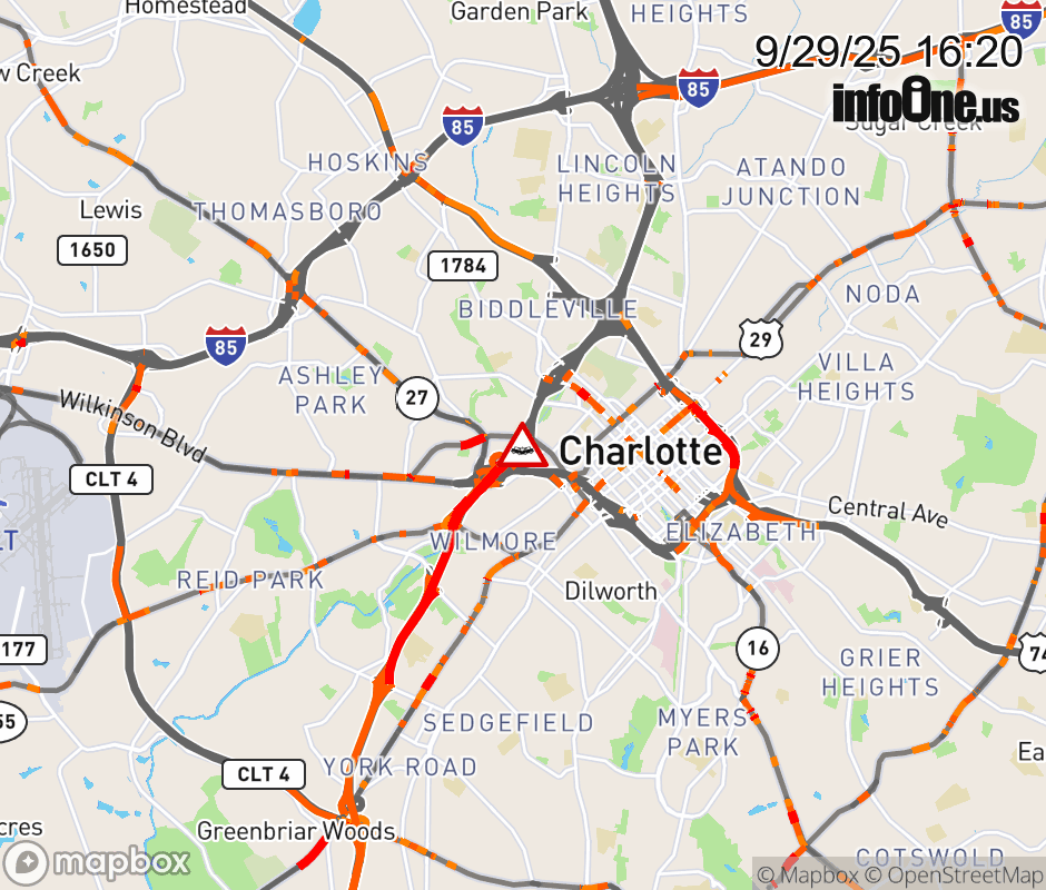 The left shoulder is closed Prior to Exit 10 (I-277)