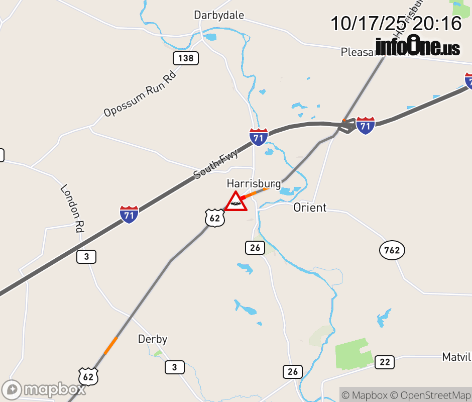 Expect lane closures on US-62 East at Harrisburg Rd, due to a crash. ![]() |