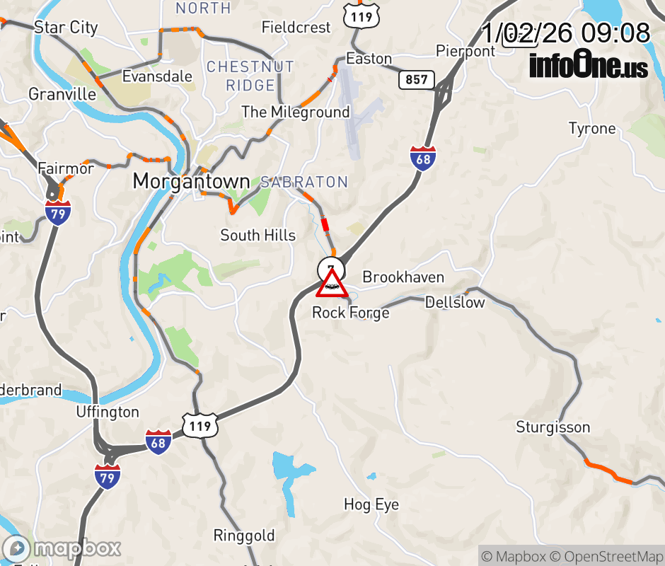 Vehicle Crash on WV-7 (Earl L Core Road near Brookhaven Road). ![]() |