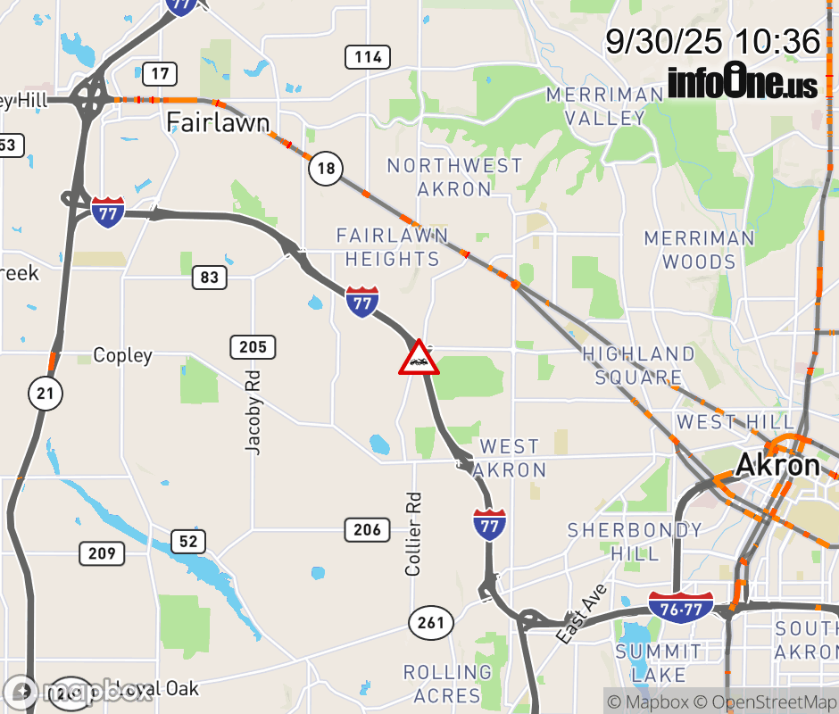 The left shoulder is blocked on I-77 South beyond White Pond Dr/Mull Ave, due to a disabled vehicle. ![]() |