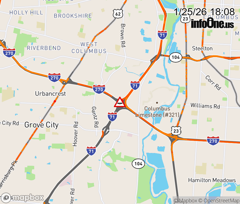 Canceled 1/25/26 6:18 PM Location: Ramp I-270 West to I-71 South (Southside) S, OH Accident.