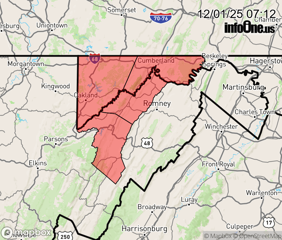 Canceled 12/1/25 9:32 AM Winter Weather Advisory issued December 1 at 7:11AM EST until December 2 at 1:00PM EST by NWS Baltimore MD/Washington DC ...FIRST WIDESPREAD WINTER EVENT OF THE SEASON... .Precipitation is expected to overspread the area after midnight tonight from southwest to northeast. While precipitation is likely to start as snow areawide, it is expected to mix with and change to sleet and freezing rain for most of the area. Locations along and south of US-50/I-66 likely end the event as rain as temperatures warm through the morning. Areas along the Mason-Dixon Line are most likely to remain all snow through the event, but that remains uncertain given exact low track. The Tuesday morning commute could be impacted for all areas in the Winter Weather Advisory. Updates to the forecast are likely, so please remain weather aware for the first widespread winter event of the season. * WHAT... Mixed precipitation expected. Total snow and sleet accumulations between 1 and 3 inches, with locally up to 4 inches near the Mason-Dixon Line. Ice accumulations up to one tenth of an inch. * WHERE... Portions of western Maryland and eastern West Virginia. * WHEN... From 1 AM to 1 PM EST Tuesday. * IMPACTS... Plan on slippery road conditions. The hazardous conditions will likely impact the Tuesday morning commute. * ADDITIONAL DETAILS... Precipitation is expected to overspread the area after midnight tonight. Precipitation is expected to start as snow before mixing with sleet and freezing rain. Should precipitation stay all snow or snow for a longer period of time, locally higher snowfall amounts would be possible. Additional upslope snow showers are expected Tuesday afternoon for locations west of the Allegheny Front which could produce a coating to inch or so of additional accumulation. ![]() |