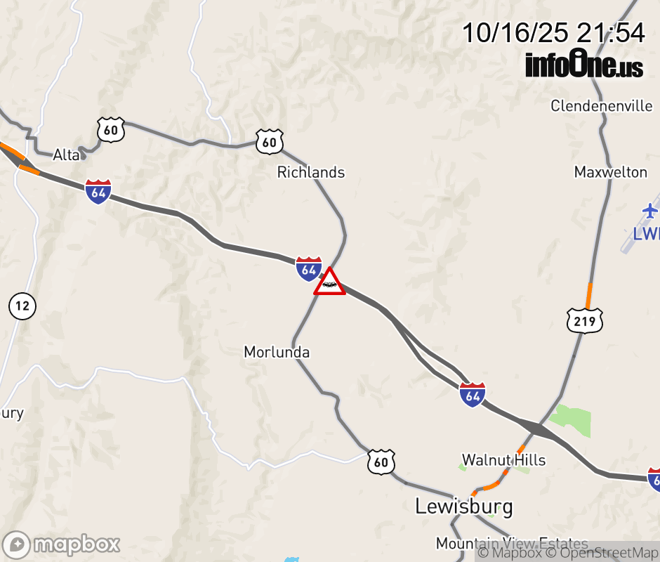 Canceled 10/17/25 2:40 AM Location: I-64 at MM 166.0, WV Accident.