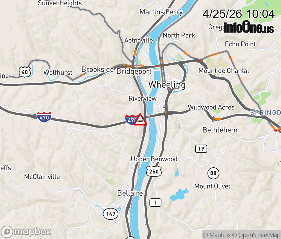 Expect lane closures on Ramp from OH-7 S to I-470 E, due to a crash. ![]() |