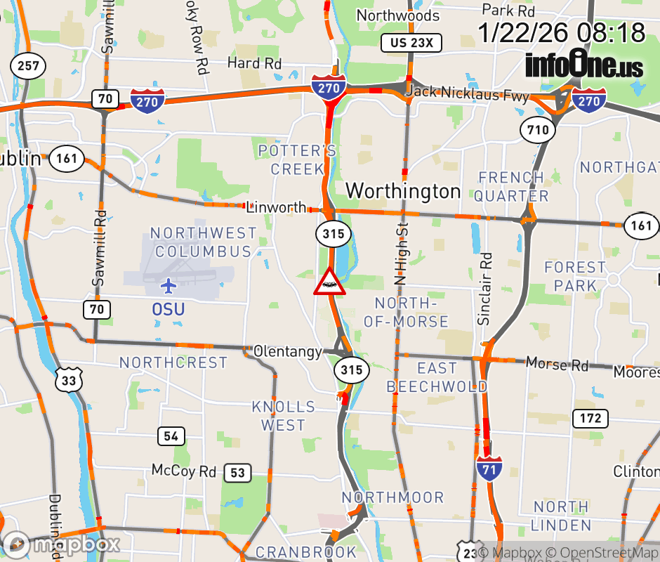 The left shoulder is blocked on SR-315 South beyond SR-161, due to a crash. Updated: Thu 1/22/26 8:18 AM EST ![]() Updated: Thu 1/22/26 8:18 AM EST |