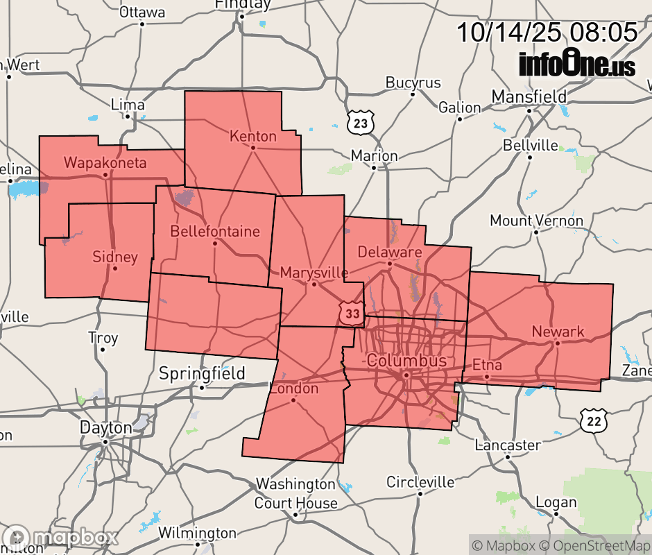 Canceled 10/14/25 9:30 AM Special Weather Statement issued October 14 at 8:03AM EDT by NWS Wilmington OH Areas of fog will continue through mid-morning, with locally dense fog possible. Use extra caution if traveling and remain alert for rapid changes in visibility. ![]() |