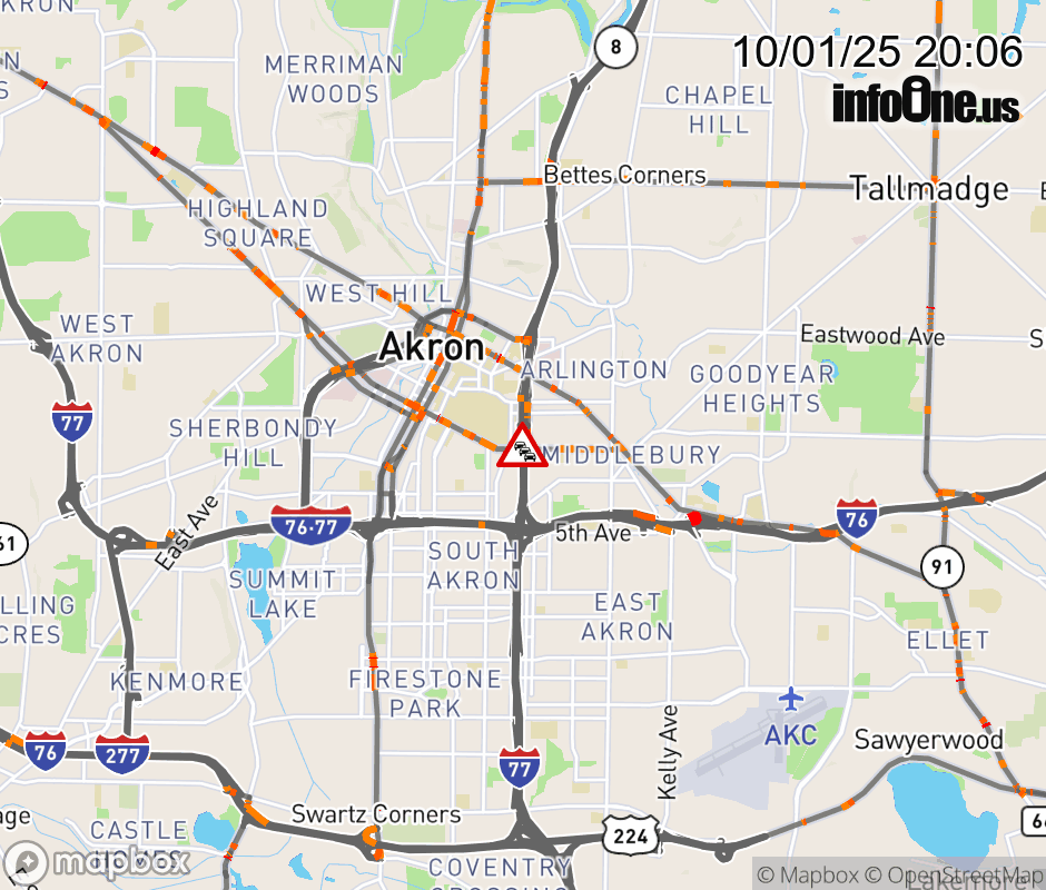 The left lane is blocked on SR-8 South beyond Buchtel Ave/Carroll St/Exchange St, due to repairs/maintenance. ![]() |