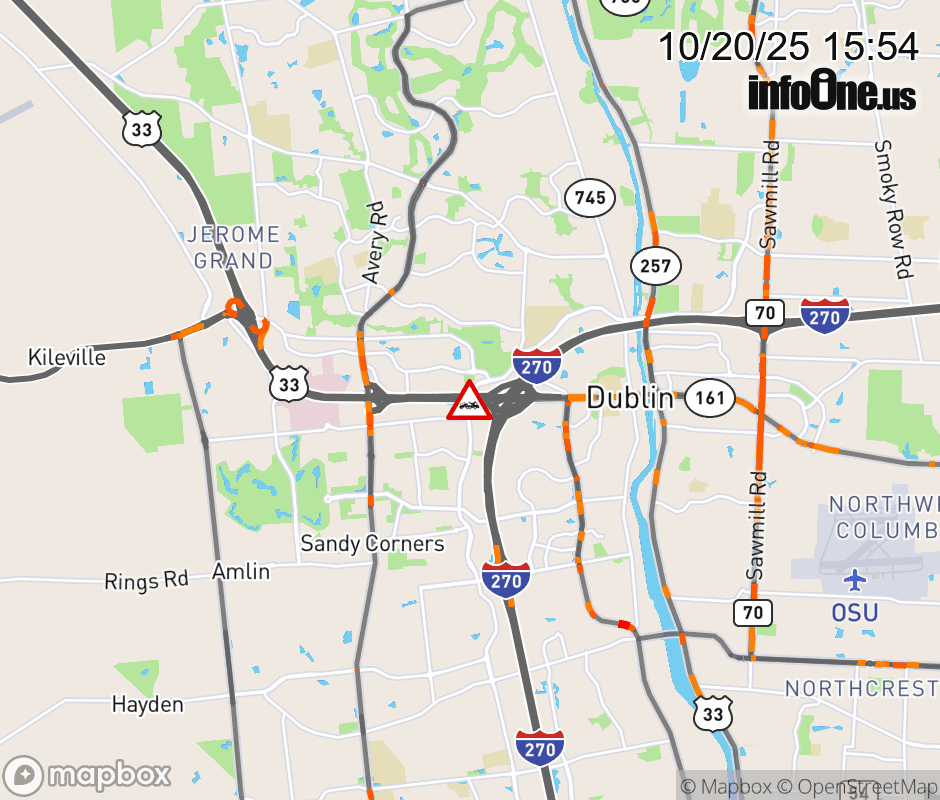 The right shoulder is blocked on US-33/SR-161 East at I-270, due to a disabled vehicle. Updated: Mon 10/20/25 3:54 PM EDT ![]() Updated: Mon 10/20/25 3:54 PM EDT |