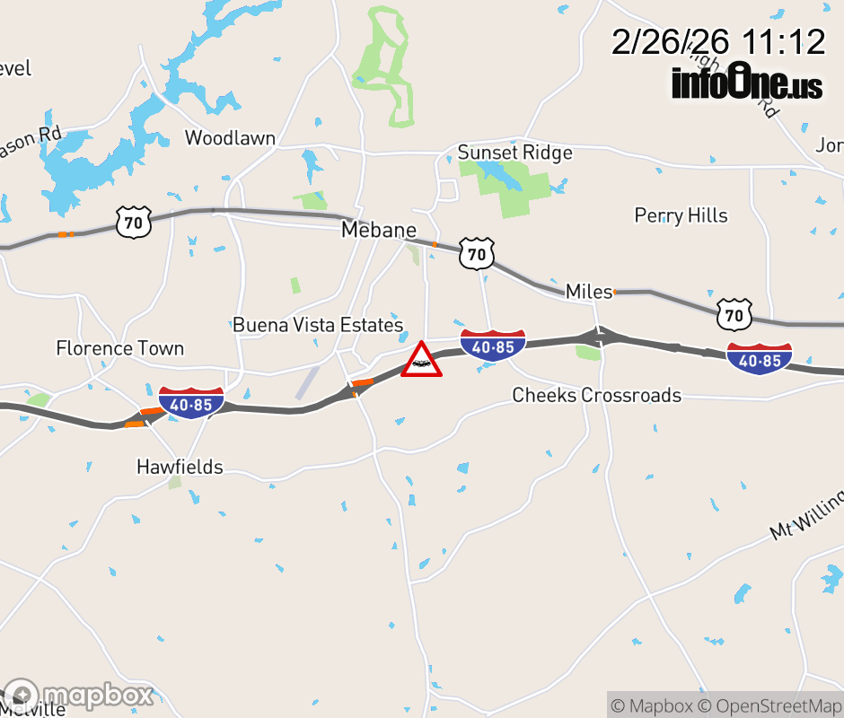 The left lane is closed prior to Exit 154 (Mebane Oaks Rd) ![]() |