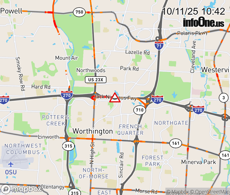 The 2 right lanes are blocked on I-270 East beyond US-23, due to a crash. Updated: Sat 10/11/25 10:42 AM EDT ![]() Updated: Sat 10/11/25 10:42 AM EDT |