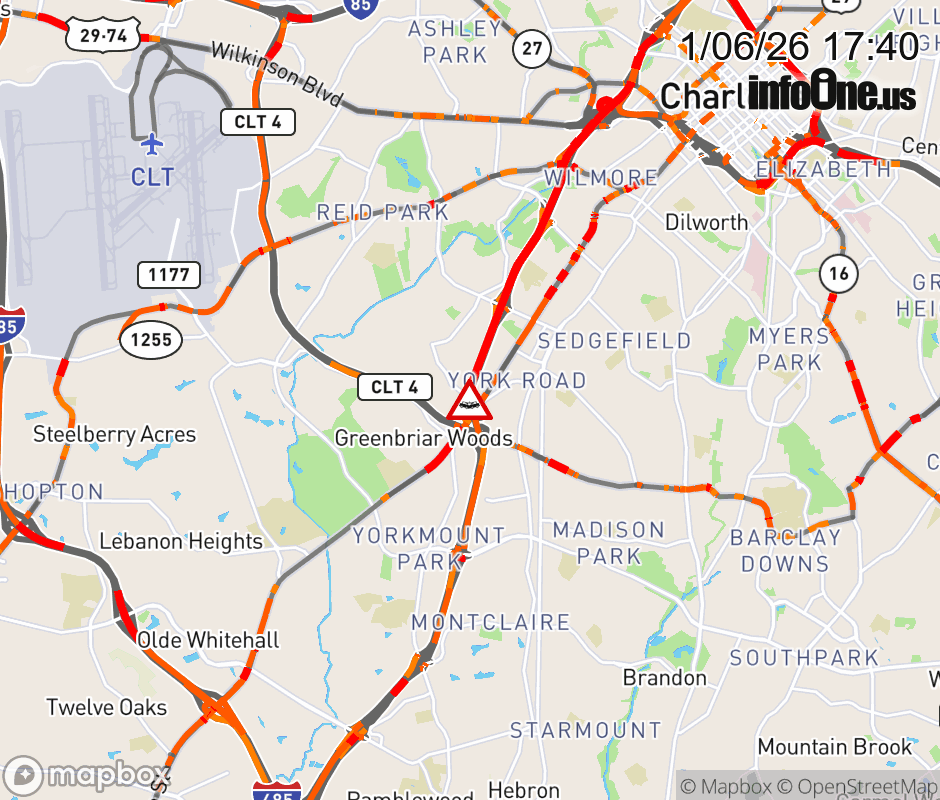 The left lane is closed at Exit 6B (South Tryon) Updated: Tue 1/6/26 5:40 PM EST ![]() Updated: Tue 1/6/26 5:40 PM EST |