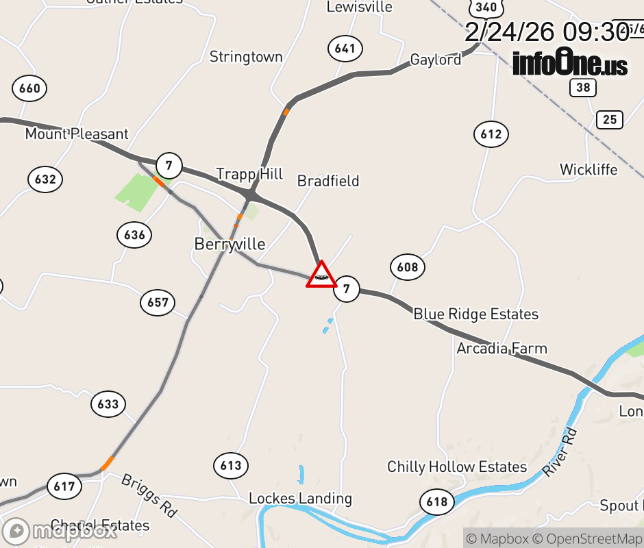On VA-7 in the County of Clarke, in the vicinity of E Main St; Xovr; BUS VA-7E/W, motorists can expect delays due to a multi-vehicle crash. The east left shoulder and left lane are closed. ![]() |