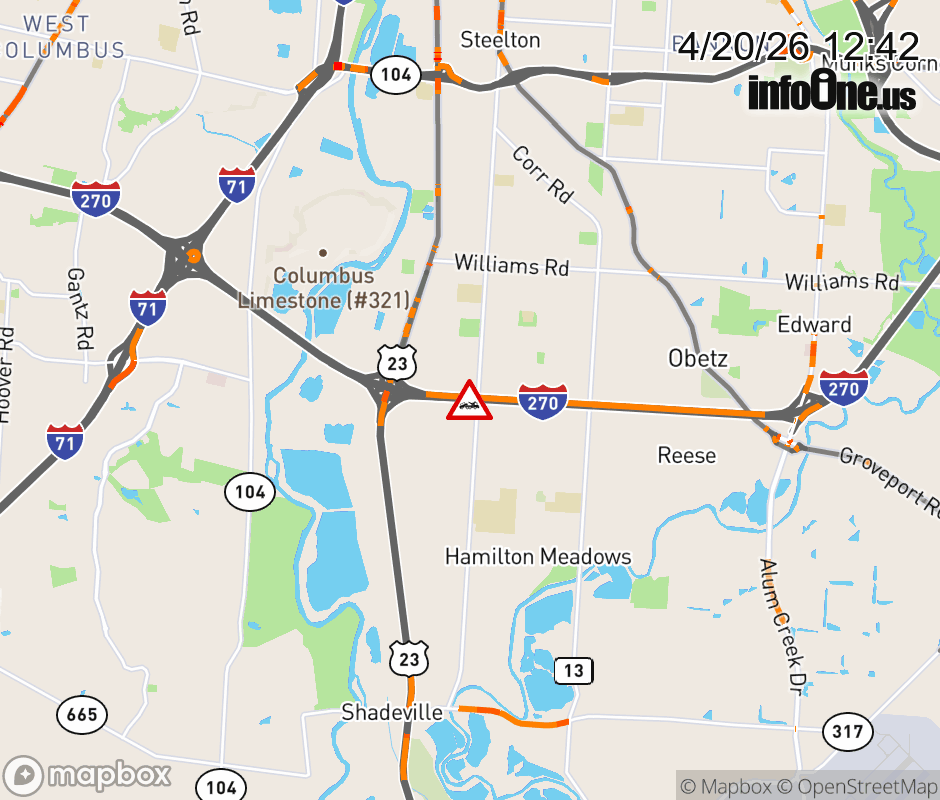 The right shoulder is blocked on I-270 East beyond US-23/S High St North, due to a disabled vehicle. ![]() |