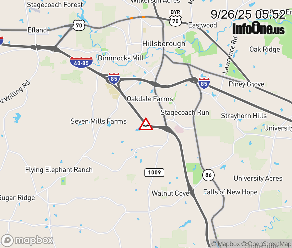 The left lane is closed near Exit 261 (old NC 86). ![]() |