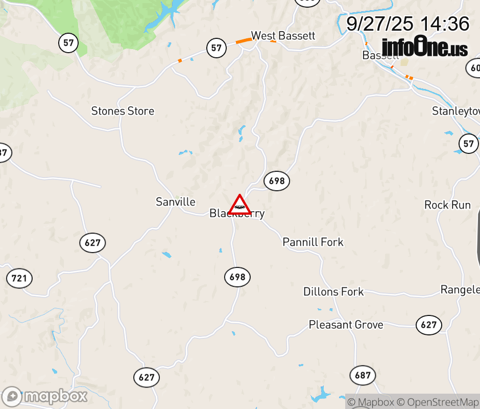 On Rt. 698 North in the County of Henry, in the vicinity of Mockingbird Ln; Rt. 723N/S (Henry County), motorists can expect delays due to a vehicle crash. Lane closures exist. ![]() |