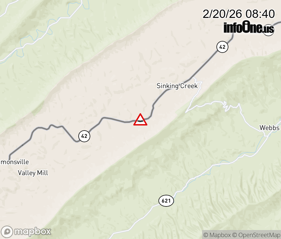 On VA-42 in the County of Craig, in the vicinity of Bethel Church Rd; Rt. 626N/S (Craig County), motorists can expect delays due to a vehicle crash. All north lanes are closed. All south lanes are closed. ![]() |