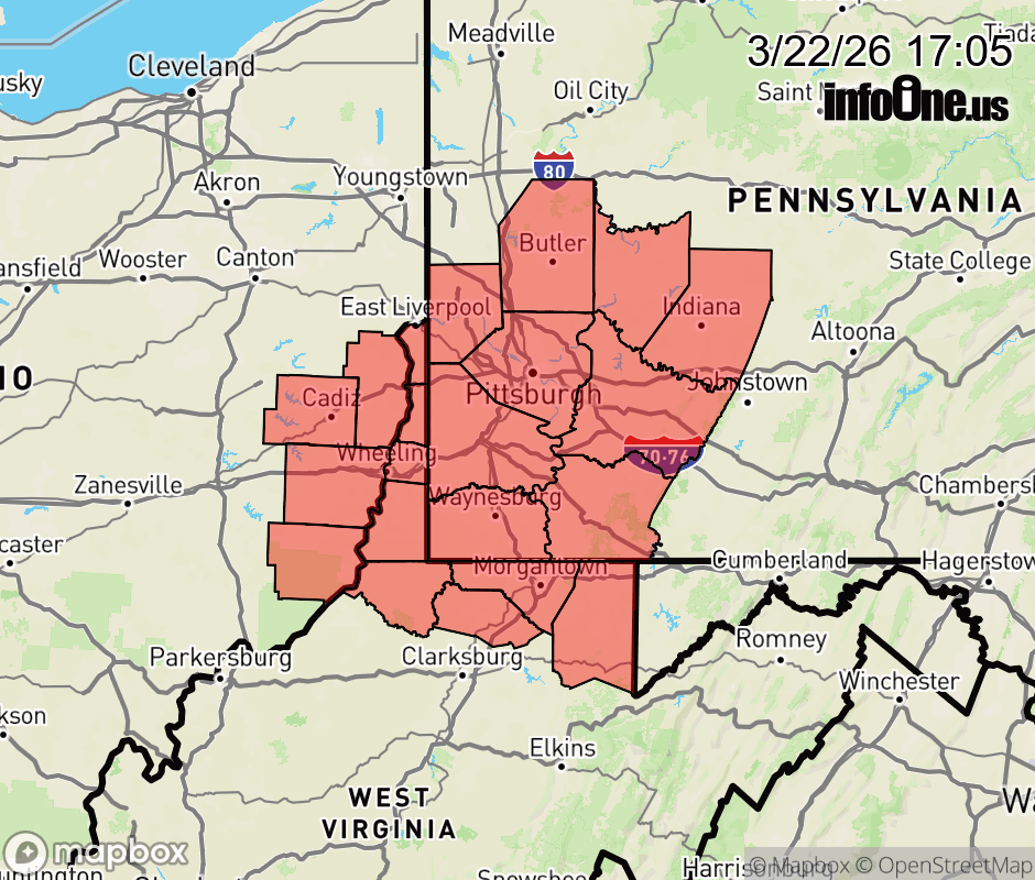 Canceled 3/22/26 8:34 PM Severe Thunderstorm Watch issued March 22 at 5:04PM EDT until March 22 at 10:00PM EDT by NWS Pittsburgh PA SEVERE THUNDERSTORM WATCH 72 REMAINS VALID UNTIL 10 PM EDT THIS EVENING FOR THE FOLLOWING AREAS IN OHIO THIS WATCH INCLUDES 4 COUNTIES IN EAST CENTRAL OHIO BELMONT HARRISON JEFFERSON OH MONROE IN PENNSYLVANIA THIS WATCH INCLUDES 9 COUNTIES IN SOUTHWEST PENNSYLVANIA ALLEGHENY FAYETTE GREENE WASHINGTON WESTMORELAND IN WEST CENTRAL PENNSYLVANIA ARMSTRONG BUTLER INDIANA IN WESTERN PENNSYLVANIA BEAVER IN WEST VIRGINIA THIS WATCH INCLUDES 8 COUNTIES IN NORTHEAST WEST VIRGINIA PRESTON IN NORTHERN WEST VIRGINIA MARION MONONGALIA WETZEL IN THE NORTHERN PANHANDLE OF WEST VIRGINIA BROOKE HANCOCK MARSHALL OHIO THIS INCLUDES THE CITIES OF ALIQUIPPA, AMBRIDGE, BEAVER FALLS, BUTLER, CADIZ, CANONSBURG, CONNELLSVILLE, FAIRMONT, FOLLANSBEE, FORD CITY, GREENSBURG, INDIANA, KINGWOOD, KITTANNING, LATROBE, MARTINS FERRY, MASONTOWN, MONACA, MORGANTOWN, MOUNDSVILLE, MURRYSVILLE, NEW KENSINGTON, NEW MARTINSVILLE, PITTSBURGH METRO AREA, ST. CLAIRSVILLE, STEUBENVILLE, TERRA ALTA, UNIONTOWN, WASHINGTON, WAYNESBURG, WEIRTON, WELLSBURG, WHEELING, AND WOODSFIELD. ![]() |