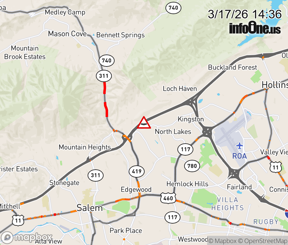 On I-81 at mile marker 142.2 in the County of Roanoke, motorists can expect delays due to a vehicle crash. The north right shoulder is closed. ![]() |