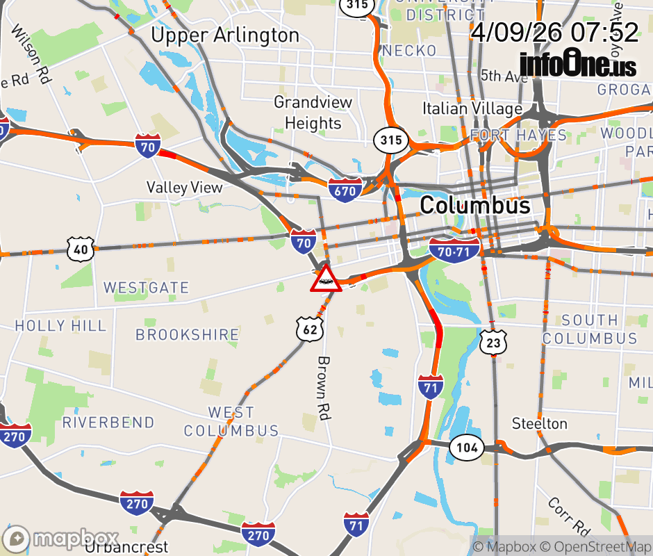 The left shoulder is blocked on I-70 East beyond US-40/ W Broad St, due to a crash. Updated: Thu 4/9/26 7:52 AM EDT ![]() Updated: Thu 4/9/26 7:52 AM EDT |