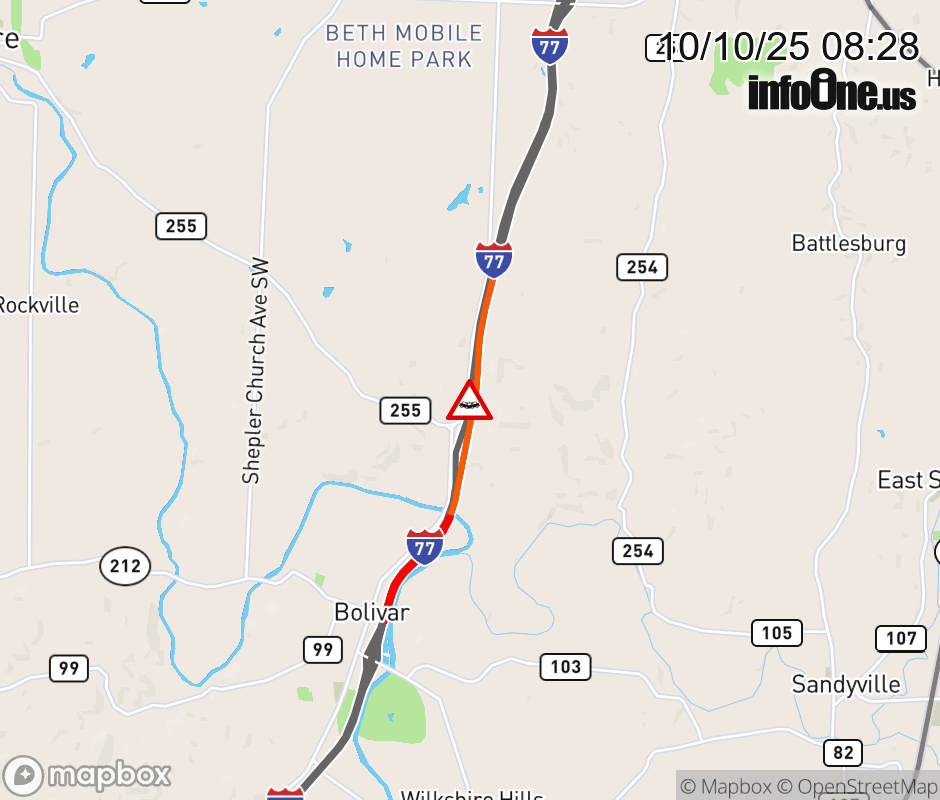 Expect lane closures on I-77 South beyond Fohl Rd, due to a crash. Updated: Fri 10/10/25 8:28 AM EDT ![]() |