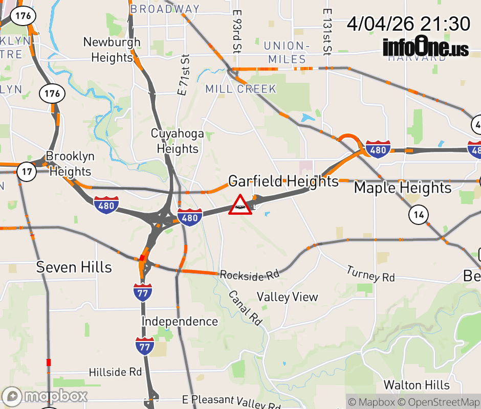 The 3 right lanes are blocked on I-480 West beyond Transportation Blvd/E 98th St, due to a crash. ![]() |