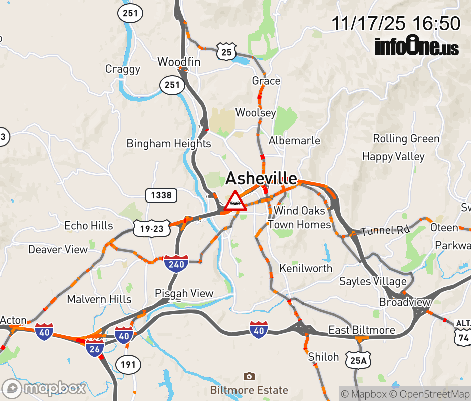 The right shoulder is closed prior to Exit 4C, Haywood Street. Updated: Mon 11/17/25 4:50 PM EST ![]() Updated: Mon 11/17/25 4:50 PM EST |
