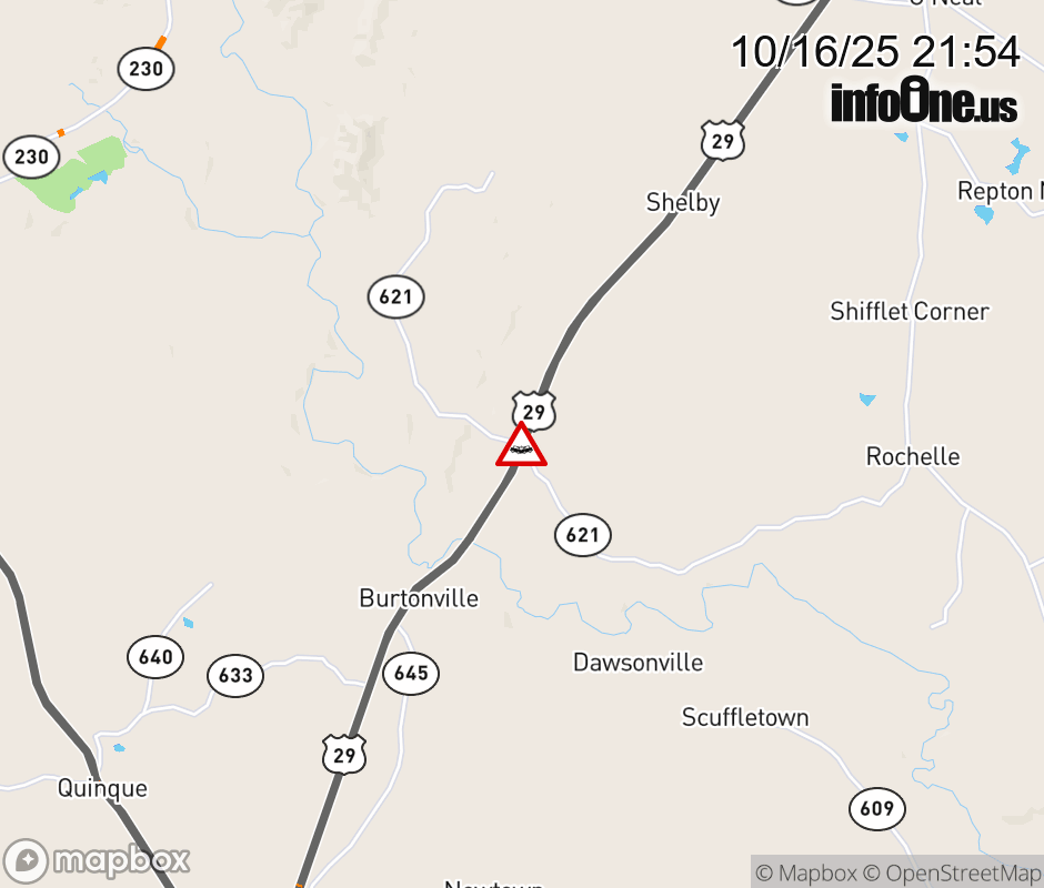 On US-29 in the County of Madison, in the vicinity of Seville Rd; Rt. 621E/W (Madison County), motorists can expect delays due to a vehicle crash. All south lanes are closed. ![]() |