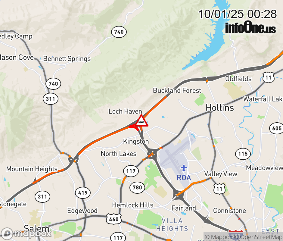 On I-81 at mile marker 144 in the County of Roanoke, motorists can expect delays due to a tractor trailer crash. The north right lane and right shoulder are closed. Updated: Wed 10/1/25 12:28 AM EDT ![]() Updated: Wed 10/1/25 12:28 AM EDT |