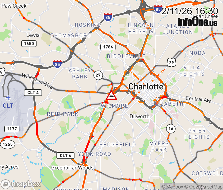 The right shoulder is closed at Exit 9 (I-277). Updated: Wed 2/11/26 4:30 PM EST ![]() Updated: Wed 2/11/26 4:30 PM EST |