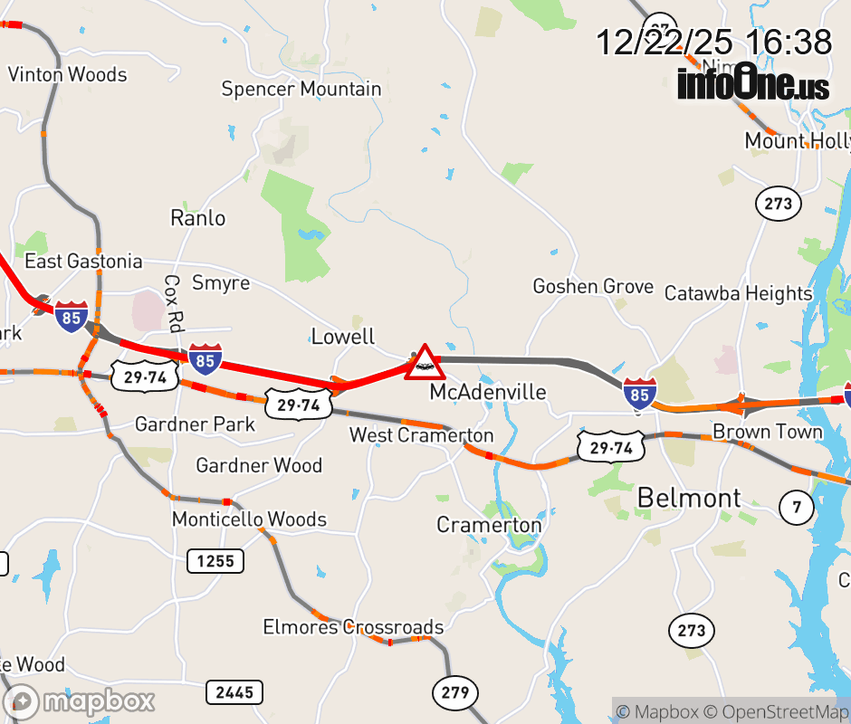 Canceled 12/22/25 5:26 PM Location: I-85N at MM 23, NC Vehicle Crash.