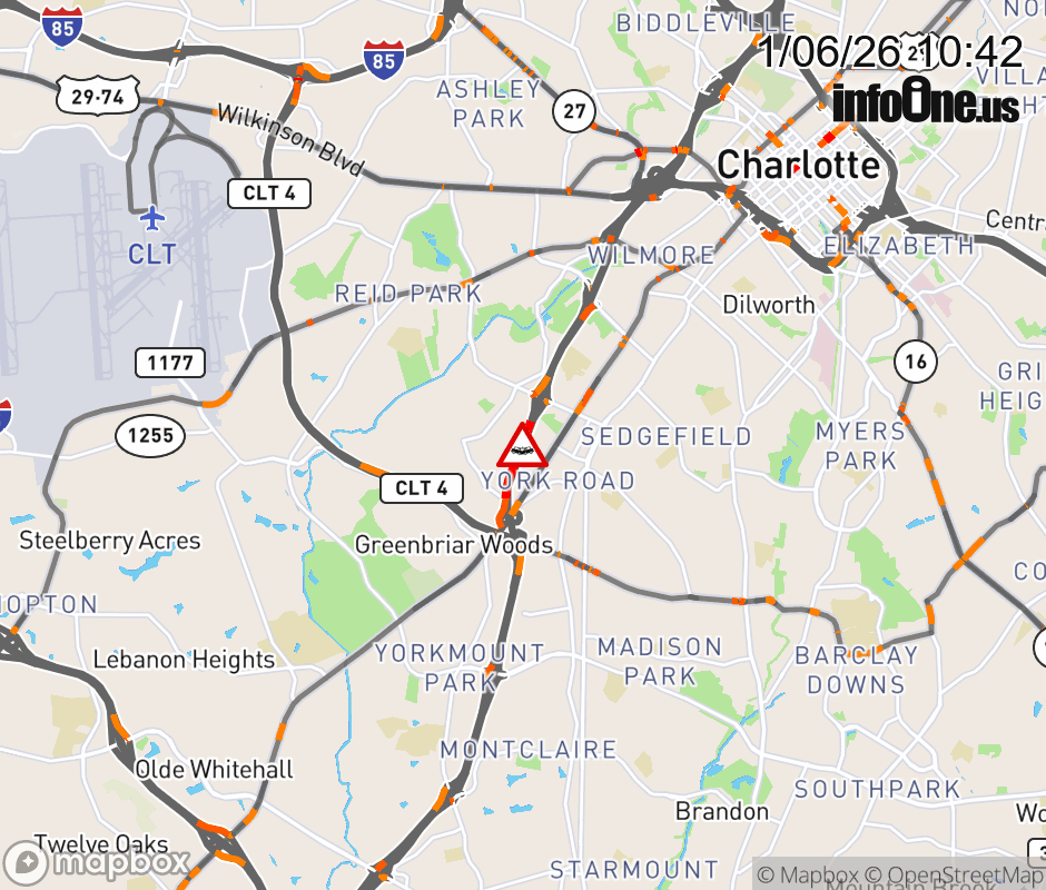 The left and center lanes are closed before Exit 6B (S. Tryon St.). DMS: Mobility Partners Updated: Tue 1/6/26 10:42 AM EST ![]() Updated: Tue 1/6/26 10:42 AM EST |