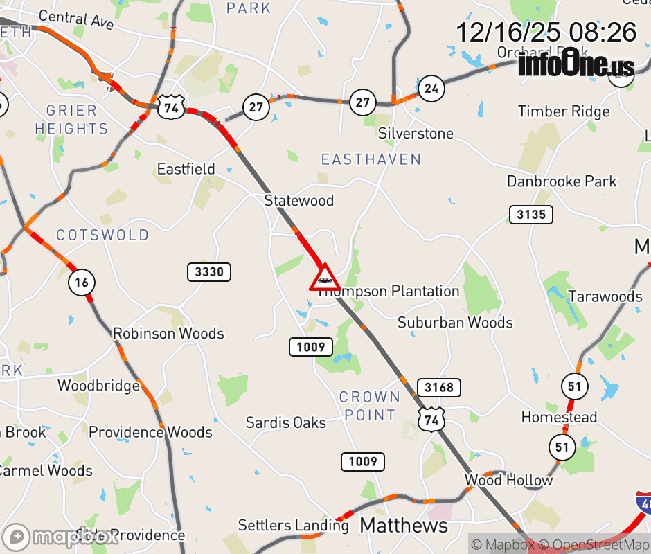 Canceled 12/16/25 8:34 AM Location: Independence Blvd (US-74E), NC Vehicle Crash.