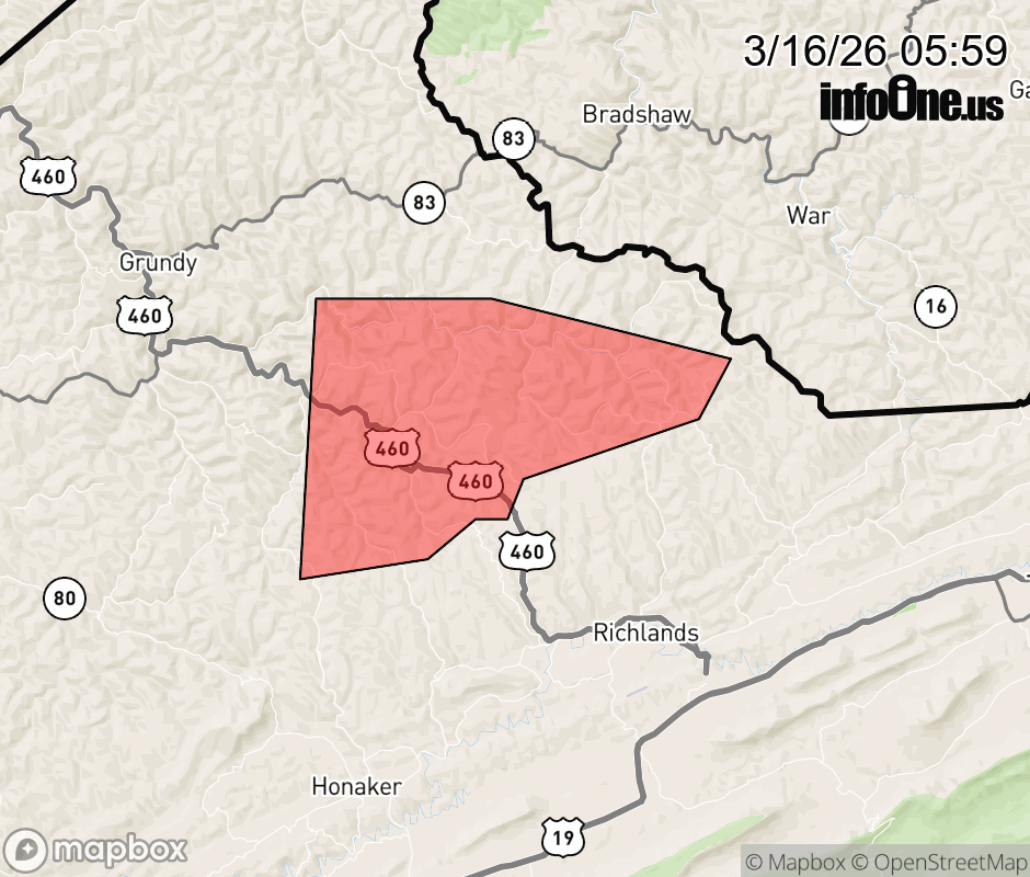 Canceled 3/16/26 6:12 AM Severe Thunderstorm Warning issued March 16 at 5:58AM EDT until March 16 at 6:15AM EDT by NWS Charleston WV At 558 AM EDT, a severe thunderstorm was located near Glen Burke, or 10 miles northwest of Richlands, moving east at 45 mph. HAZARD...60 mph wind gusts. SOURCE...Radar indicated. IMPACT...Expect damage to roofs, siding, and trees. Locations impacted include... Oakwood. ![]() |