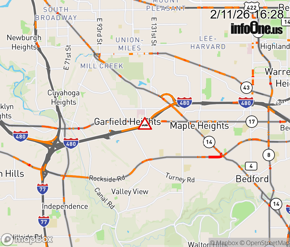 The right shoulder is blocked on I-480 West beyond SR-14/Broadway Ave, due to a disabled vehicle. ![]() |