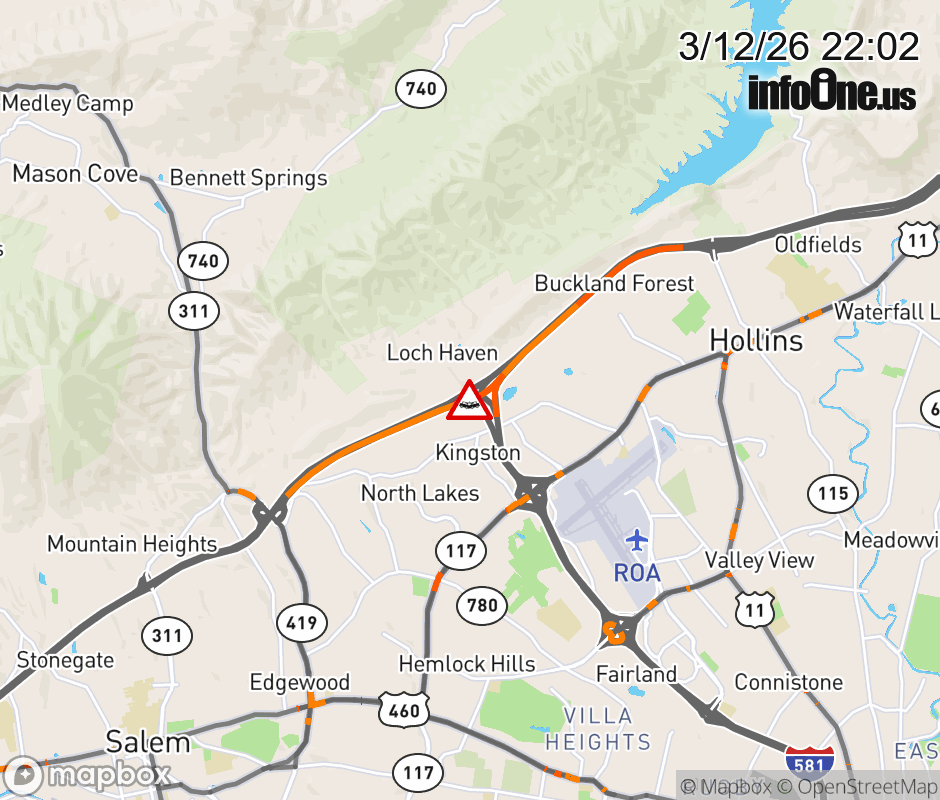 On I-81 at mile marker 143.7 in the County of Roanoke, motorists can expect delays due to a tractor trailer crash. The north right lane and right shoulder are closed. ![]() |