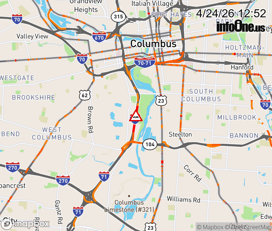 The left shoulder is blocked on I-71 North beyond SR-104/Frank Rd, due to a disabled vehicle. Updated: Fri 4/24/26 12:52 PM EDT ![]() Updated: Fri 4/24/26 12:52 PM EDT |