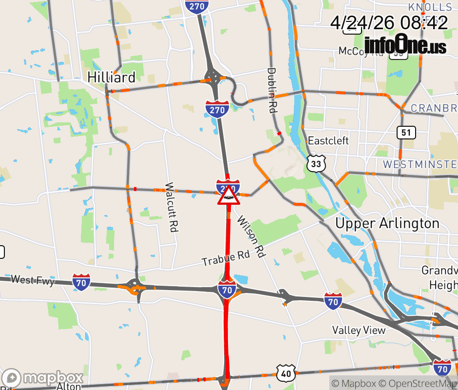 The right lane is blocked on I-270 North beyond Roberts Rd, due to a crash. Updated: Fri 4/24/26 8:42 AM EDT ![]() Updated: Fri 4/24/26 8:42 AM EDT |