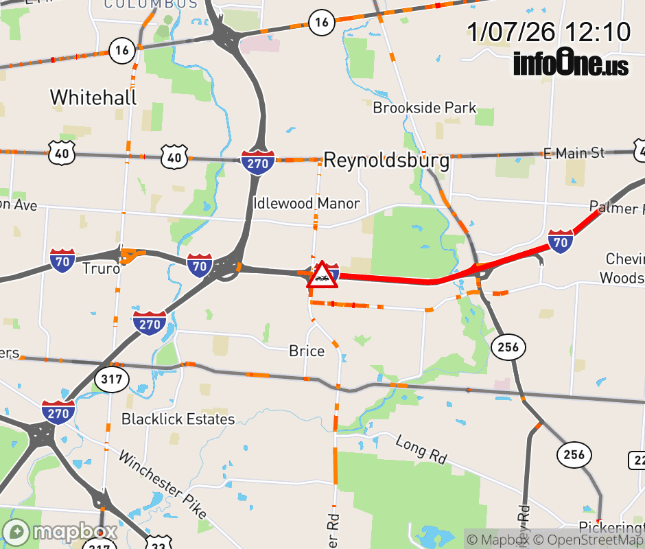 The right lane is blocked on I-70 West at Brice Rd, due to a disabled vehicle. Updated: Wed 1/7/26 12:10 PM EST ![]() Updated: Wed 1/7/26 12:10 PM EST |