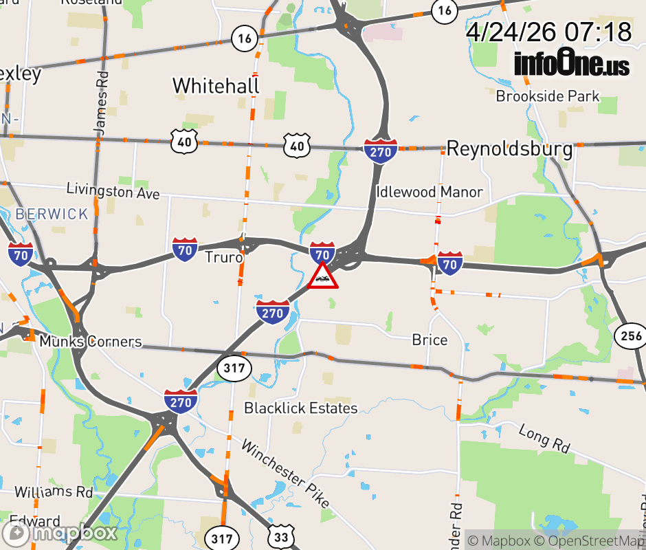 The right shoulder is blocked on I-270 South Collector beyond I-70 East, due to a disabled vehicle. ![]() |