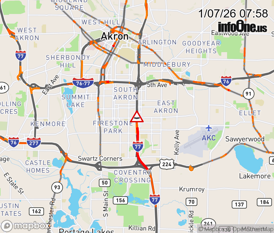 The center lane is blocked on I-77 North beyond SR-764/ Wilbeth Rd/Waterloo Rd, due to a crash. ![]() |