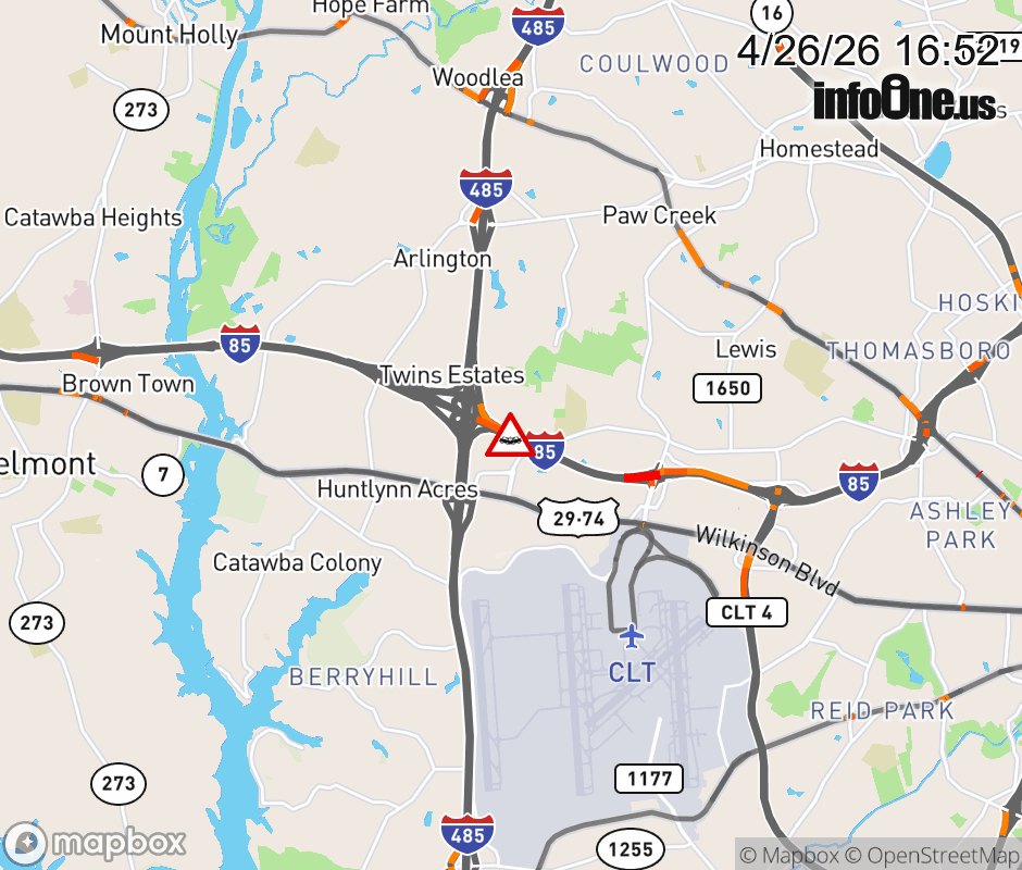 The right shoulder is closed before Exit 30 (I-485). Updated: Sun 4/26/26 4:52 PM EDT ![]() Updated: Sun 4/26/26 4:52 PM EDT |