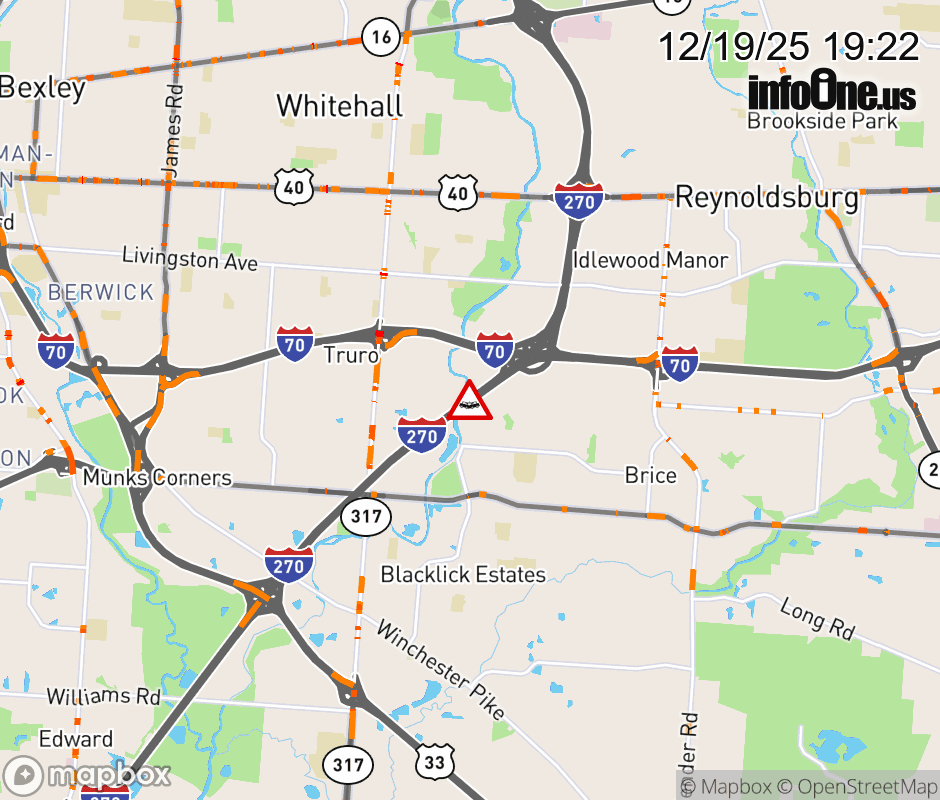 The left lane is blocked on I-270 South beyond I-70, due to a crash. Updated: Fri 12/19/25 7:22 PM EST ![]() Updated: Fri 12/19/25 7:22 PM EST |