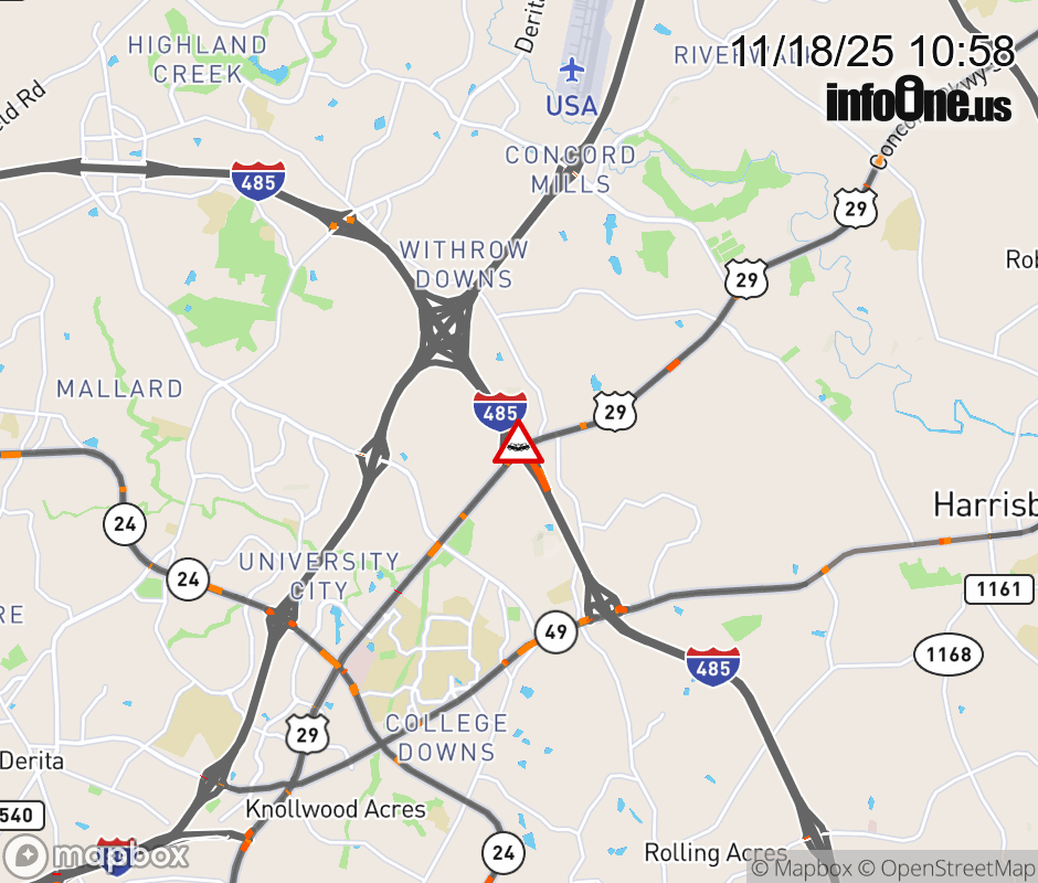 The right shoulder is closed at Exit 31 (N Tryon St.). Updated: Tue 11/18/25 10:58 AM EST ![]() Updated: Tue 11/18/25 10:58 AM EST |