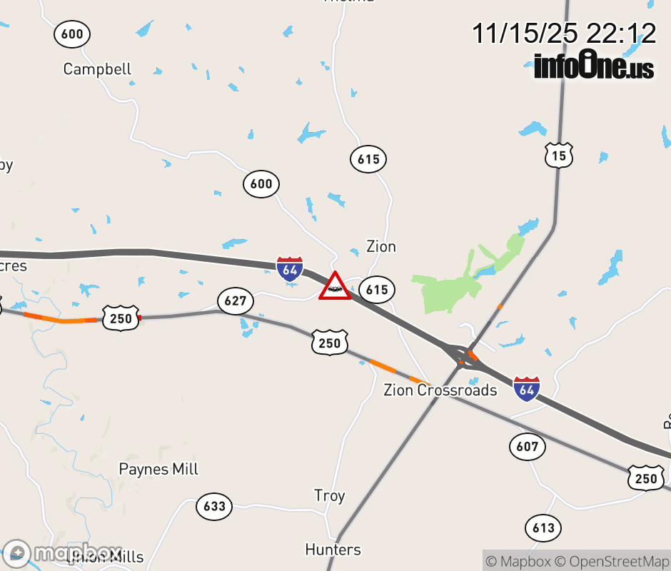 On I-64 West at mile marker 135 in the County of Louisa, motorists can expect delays due to a vehicle crash. Updated: Sat 11/15/25 10:12 PM EST ![]() Updated: Sat 11/15/25 10:12 PM EST |